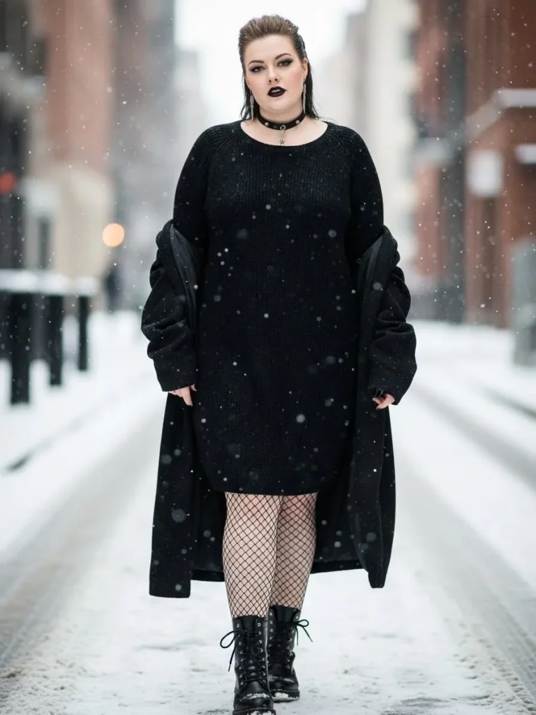 18 Bold Plus Size Alt Fashion Winter Outfits for an Edgy Cold Weather Look