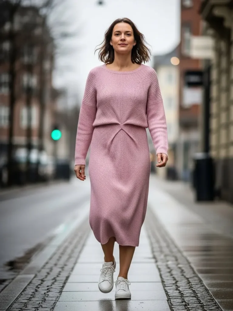 Cozy Pink Knit Dress with Sneakers