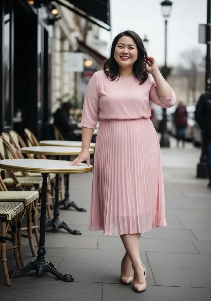 Soft Pink Pleated Dress for a Romantic Spring Day