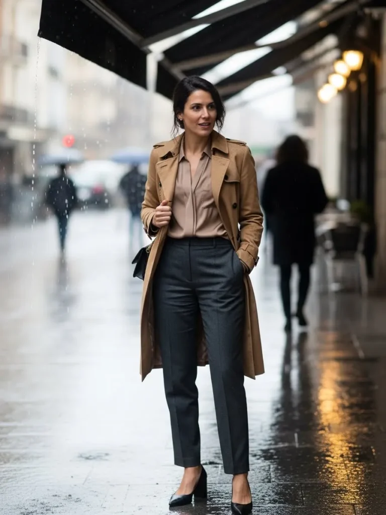 These looks are proof that rainy day style can feel calm, chic, and surprisingly effortless.