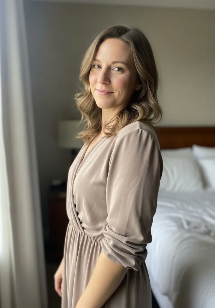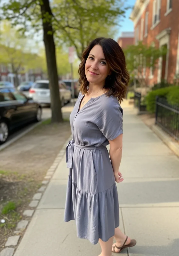 What I appreciate most is how easy this dress feels to wear. It flatters without needing much styling, and the soft tone works beautifully for spring. It’s a reliable choice when I want to feel calm, comfortable, and quietly stylish.