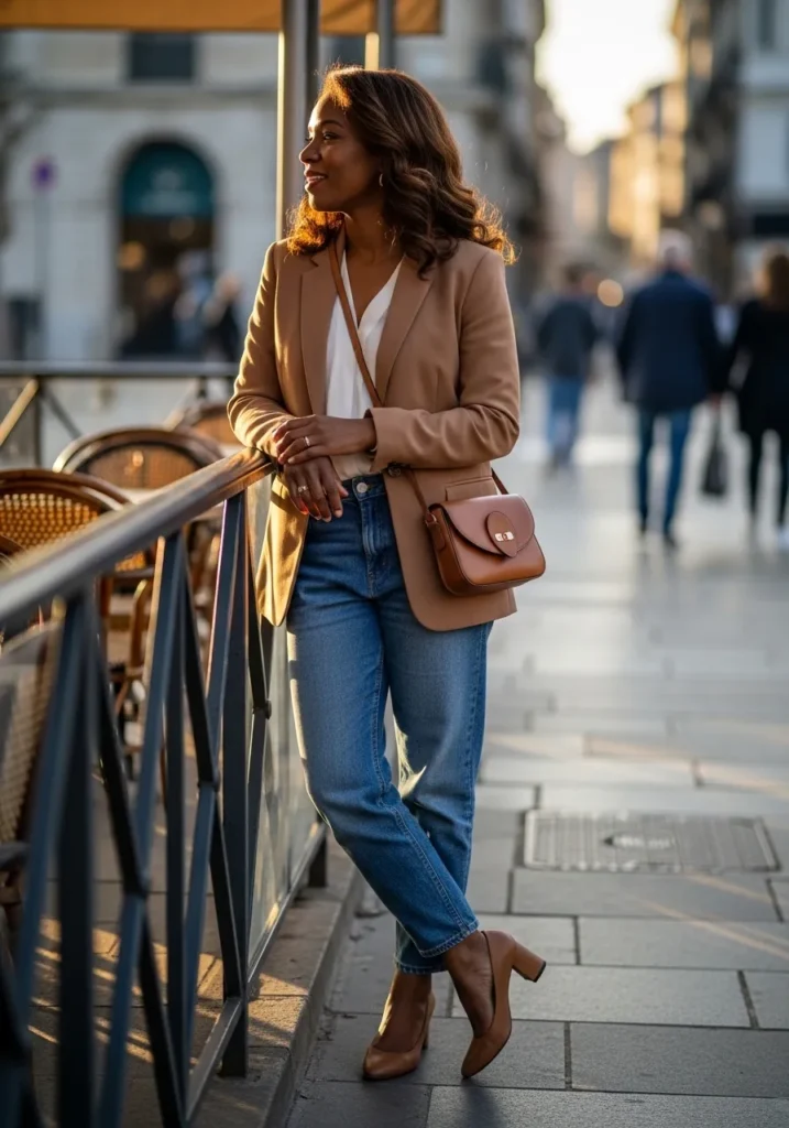 I really like how approachable this outfit feels while still looking stylish. The camel jacket instantly elevates simple jeans, and the overall color palette feels flattering and timeless. It’s one of those outfits that feels easy to wear but still gets compliments because it looks so naturally put together.
