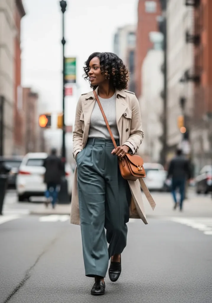 I love how this outfit feels powerful but still relaxed. The trench instantly elevates the whole look and the tailored pants create such a flattering silhouette. It is the kind of outfit that makes me feel put together even on a busy day when I just want to walk with confidence and keep things simple.