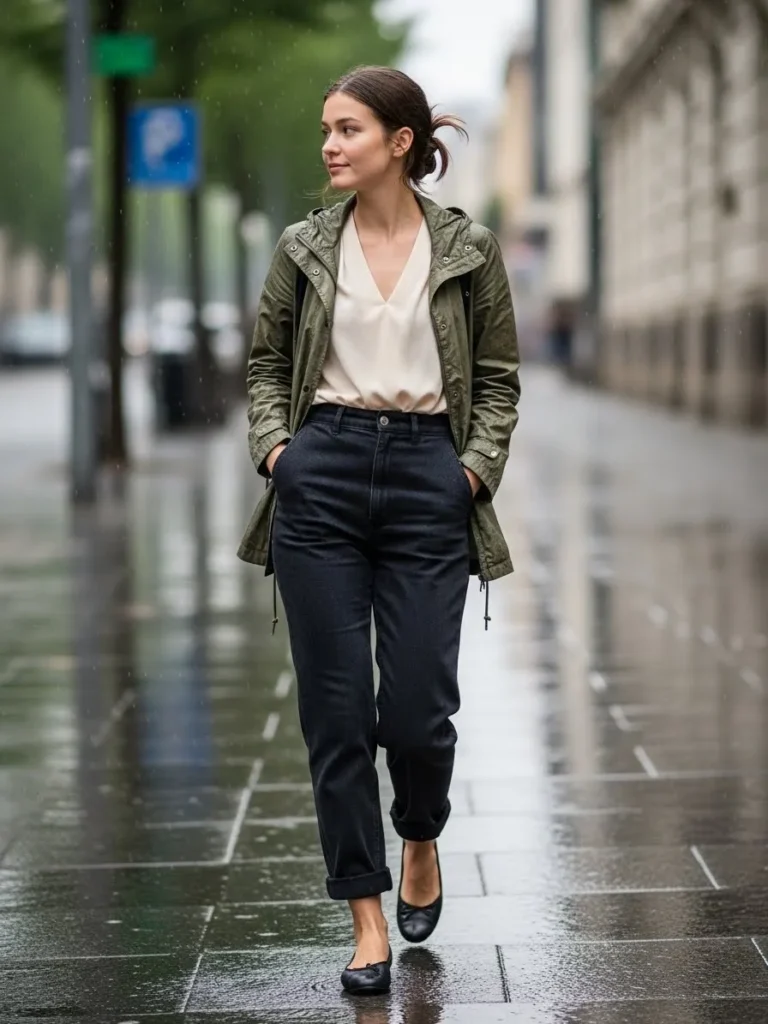 Rainy days used to stress me out because finding outfits that actually flatter a petite frame felt impossible when everything looked oversized and soggy on me.