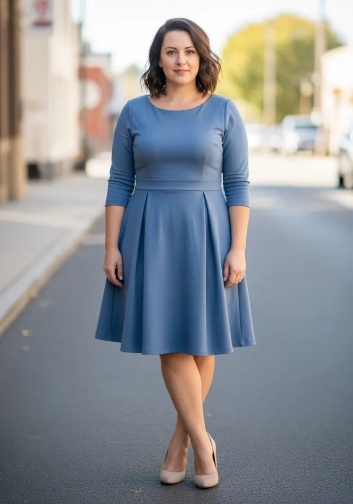 Classic Steel Blue Fit and Flare Dress