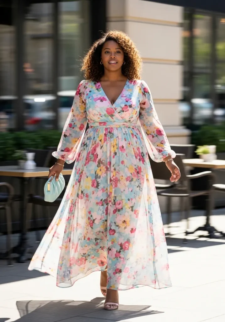 If you’re into flowy fabrics, gentle pastels, and silhouettes that celebrate your curves, you are going to adore these ideas.