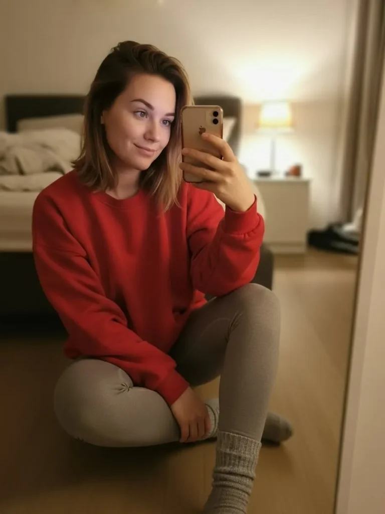 I love outfits like this for low key celebrations. It feels comfortable, flattering in a relaxed way, and still festive thanks to the red. It’s perfect for movie nights, snacks, and long chats on the couch with your best friends.