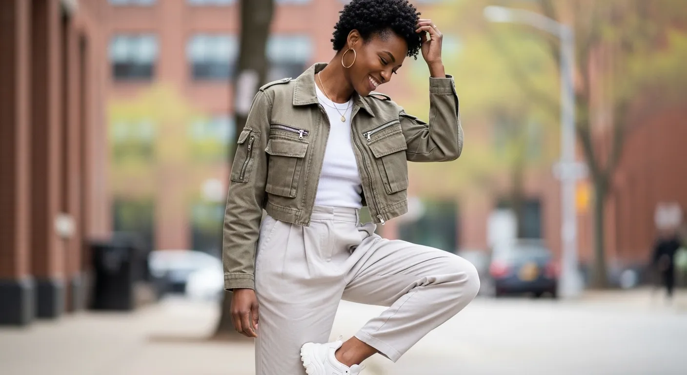 This look feels so flattering and cool at the same time. I love how the cropped top shows just a hint of shape without feeling revealing. The cargo pants add that street edge that makes the whole outfit feel intentional.