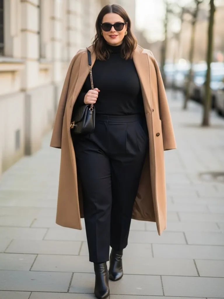 I love this look because it feels powerful and effortless at the same time. The neutral palette creates such a long, clean line and always flatters, especially in winter when I want to feel pulled together without fuss. The camel coat softens the all black underneath in the prettiest way, and I swear a good turtleneck always makes me feel like I have my life together. It is one of those outfits that works for errands, meetings or brunch with friends, and I always feel instantly chic the moment I put something like this on.