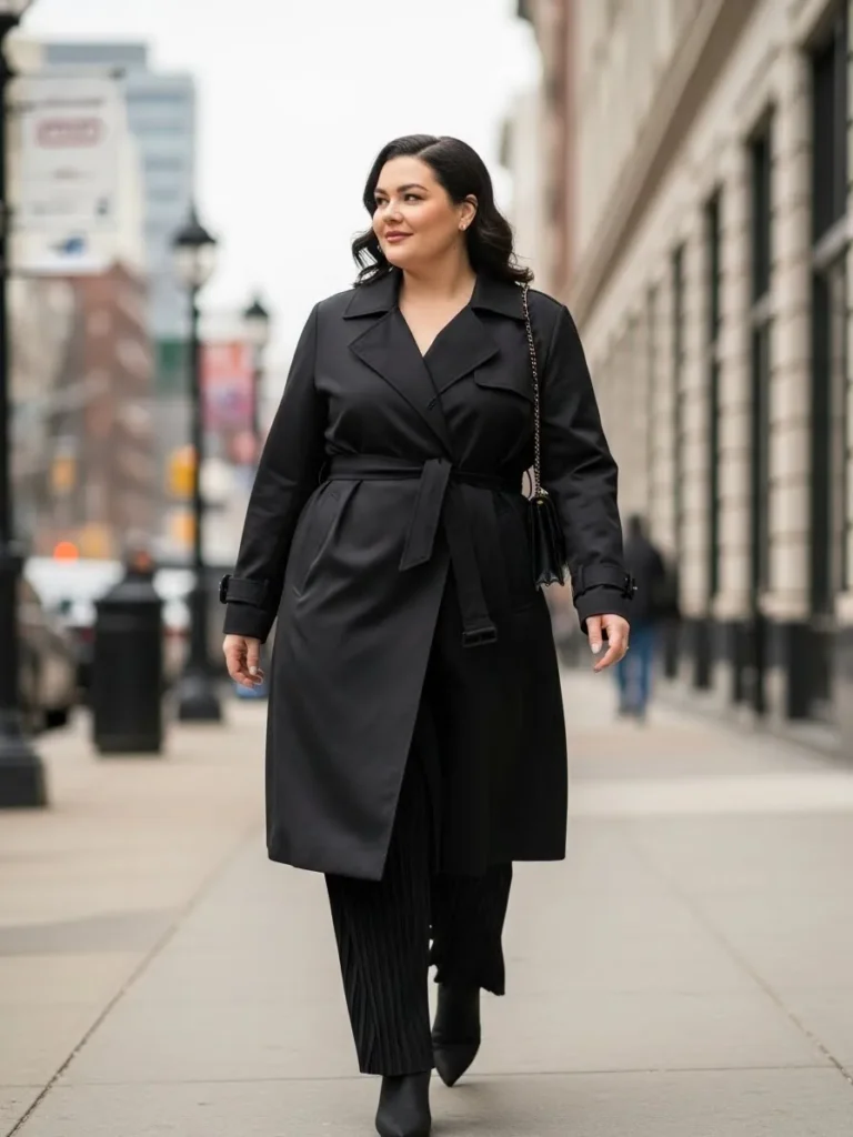 I love this look because it proves that an all black outfit can feel incredibly elevated without trying too hard. The trench pulls everything together and gives such a flattering silhouette that feels both sharp and feminine. The monochrome palette also creates that long vertical line that makes me feel taller and put together even on the chilliest days. It is the kind of winter outfit I’d wear on a busy weekday when I want to look stylish with minimal fuss.