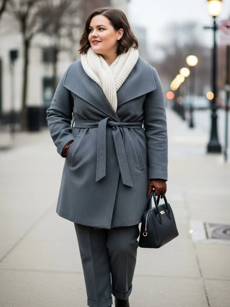 Cozy Grey Wrap Coat With Soft Winter Neutrals