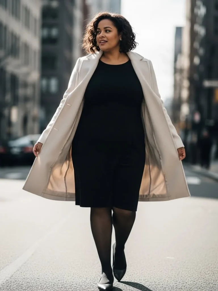 I love this outfit because it proves how powerful a simple monochrome base can be. The black dress creates a long smooth line that feels flattering without trying too hard while the ivory coat brightens everything in such a graceful way. It is one of those combinations that makes me feel instantly put together even on the busiest mornings. There is something so chic about an outfit that looks sophisticated but stays effortless and wearable which is why this one never goes out of style.