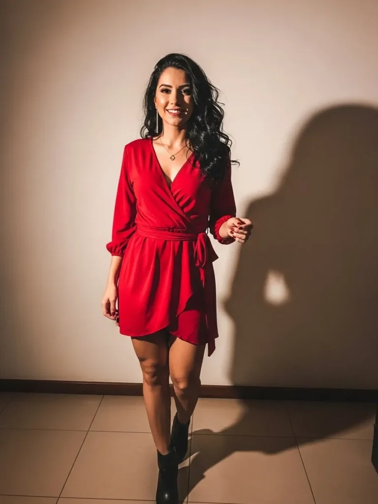 The shape is flattering without feeling tight, and the red instantly sets the mood. This is one of those outfits that makes getting ready feel exciting.