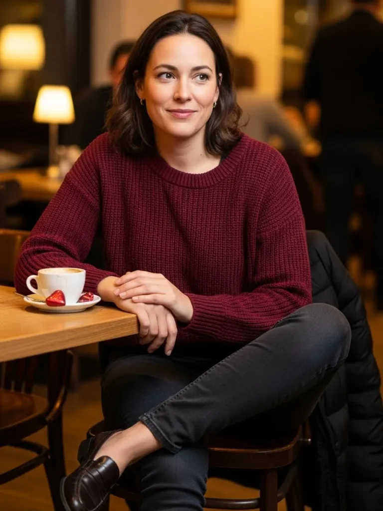 Burgundy Sweater for a Café Night