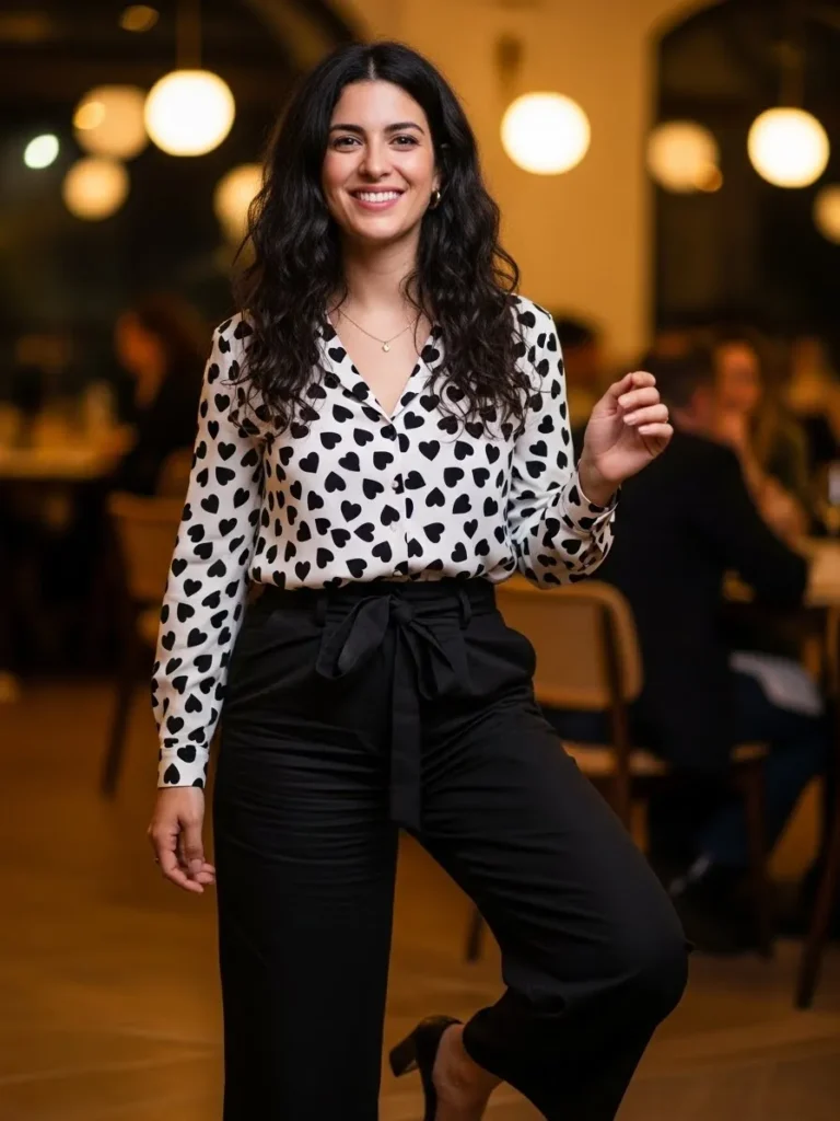Heart Print Blouse With Chic Black Trousers