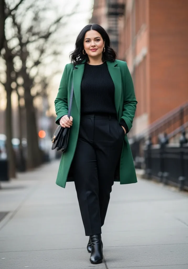 I love this outfit because it feels effortless yet instantly put together. The green coat does all the work by adding color without being loud while the all black base keeps everything slimming and sophisticated. I always reach for combinations like this when I want to feel confident but still comfortable since the clean lines and darker pieces create such a flattering shape. It is the kind of outfit that makes winter dressing feel fun instead of frustrating and honestly I would wear this on repeat.