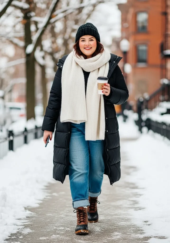 Cozy Black Puffer With Classic Winter Layers