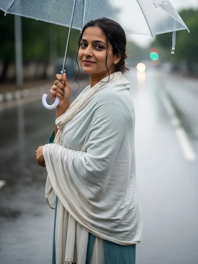 It feels feminine, flattering, and perfect for days when rain makes everything feel a bit more romantic.