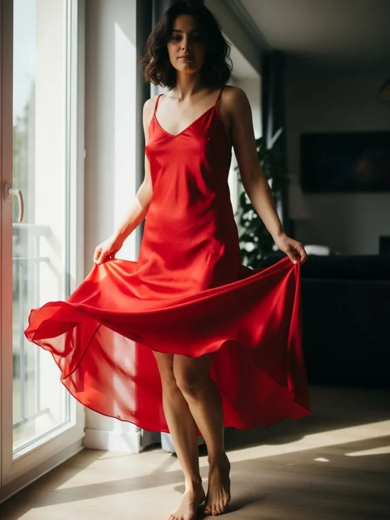Effortlessly Chic: Red Satin Slip Dress