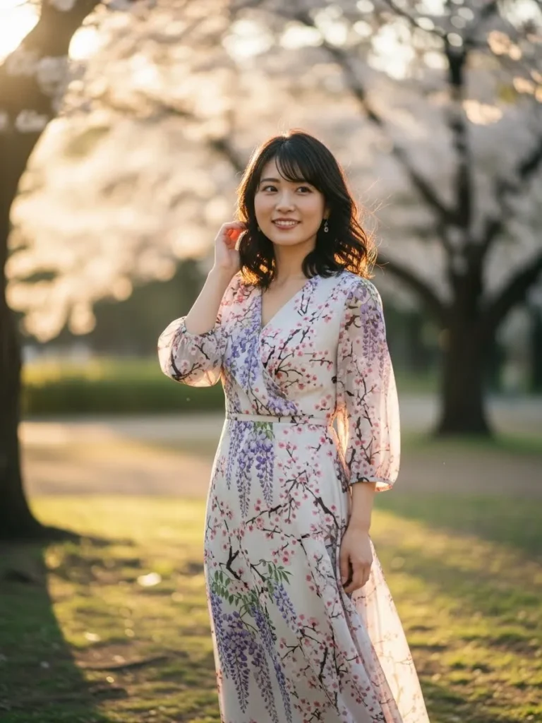 This dreamy floral wrap dress is a beautiful choice for Valentine’s Day. The delicate wisteria and cherry blossom print, combined with the flowing fabric, creates a soft and feminine silhouette. The light and airy vibe of the dress makes it feel romantic and perfect for a springtime date.