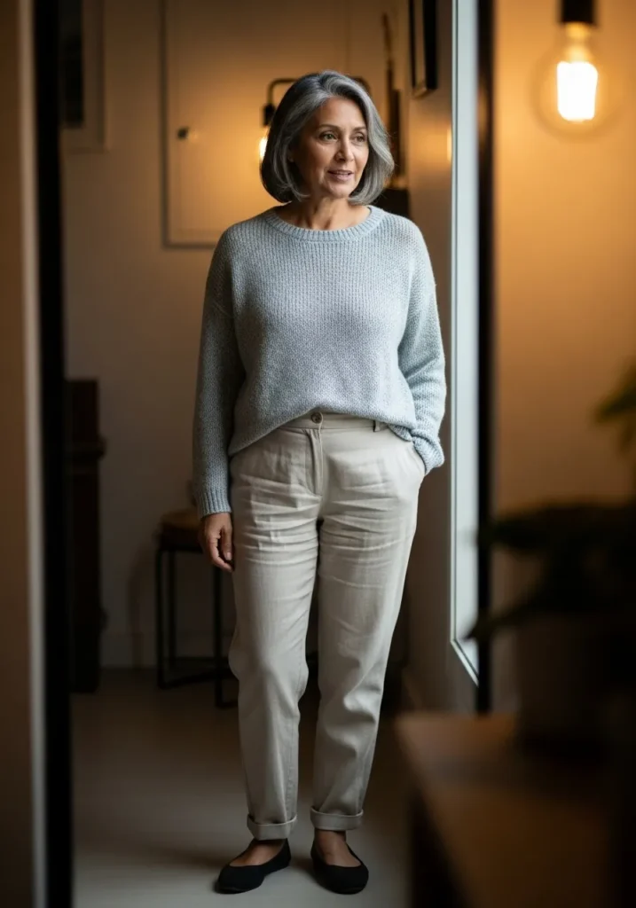 I really appreciate outfits like this because they prove comfort can still look chic. The matching tones make it feel intentional, not lazy, and the relaxed fit is incredibly flattering. It is perfect for days when you want to feel good without putting in extra effort.