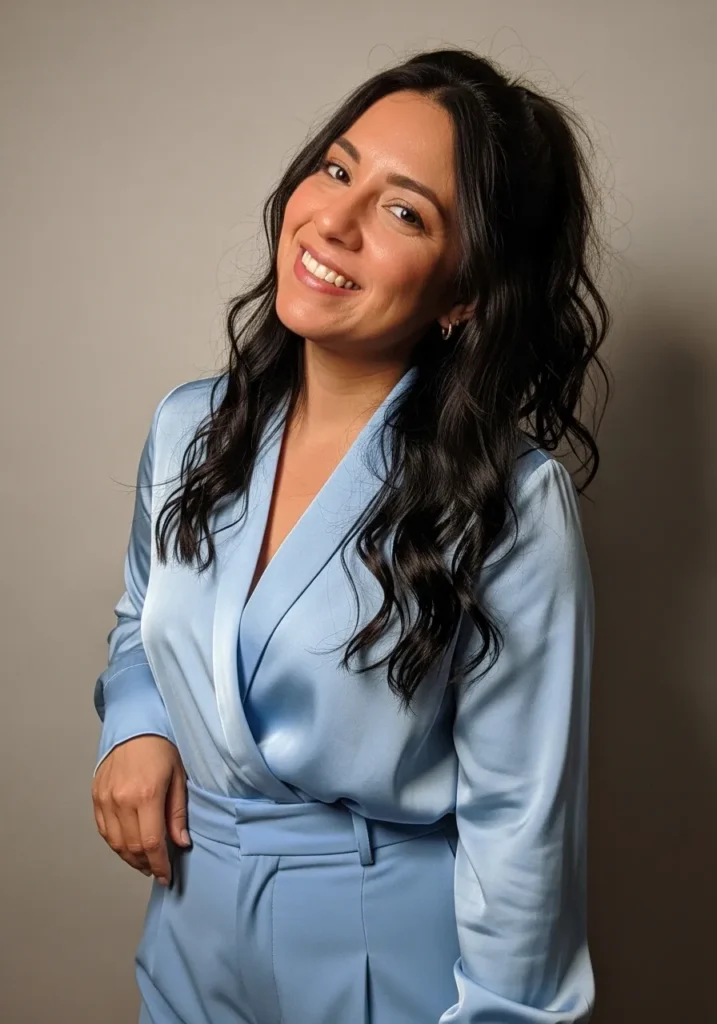 What I like most about this look is how approachable it feels. The light blue knit softens the whole outfit and makes it feel warm and friendly. It is perfect for days when I want to look put together but still feel relaxed and casual.