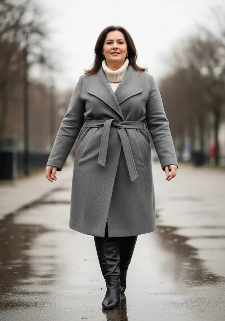 Cozy Gray Wrap Coat With Sleek Knee High Boots