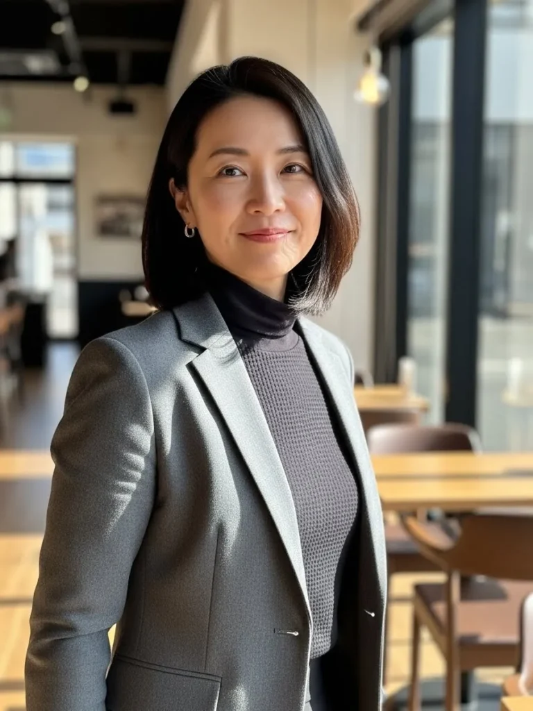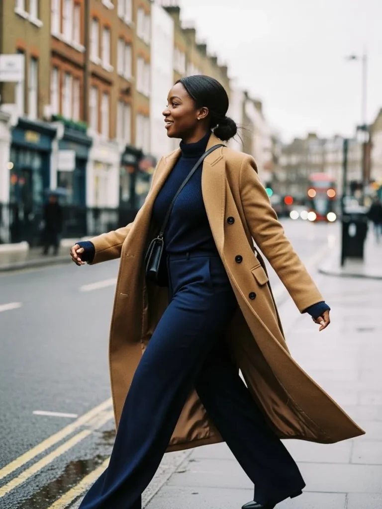 The overall vibe feels relaxed, polished, and perfect for chilly office commutes.