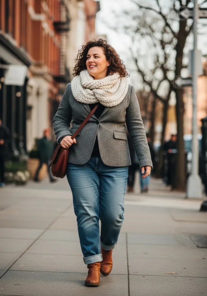 Cozy Grey Blazer and Chunky Scarf Street Look