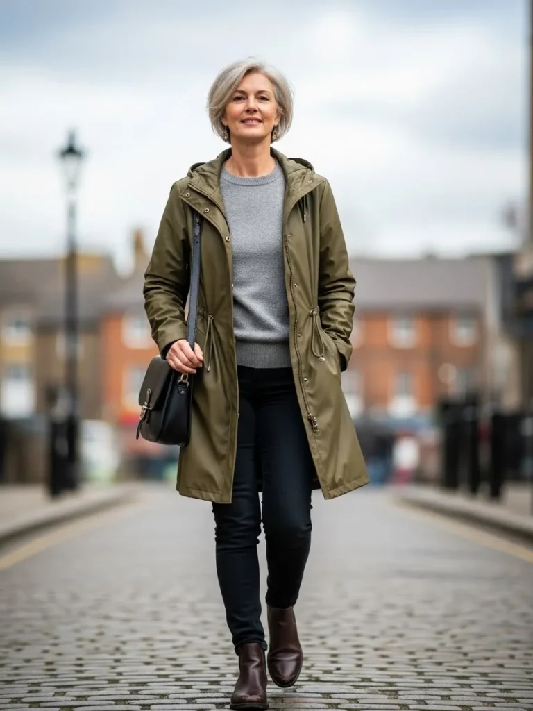 It gives off an easy, everyday vibe that still looks stylish in the rain.
