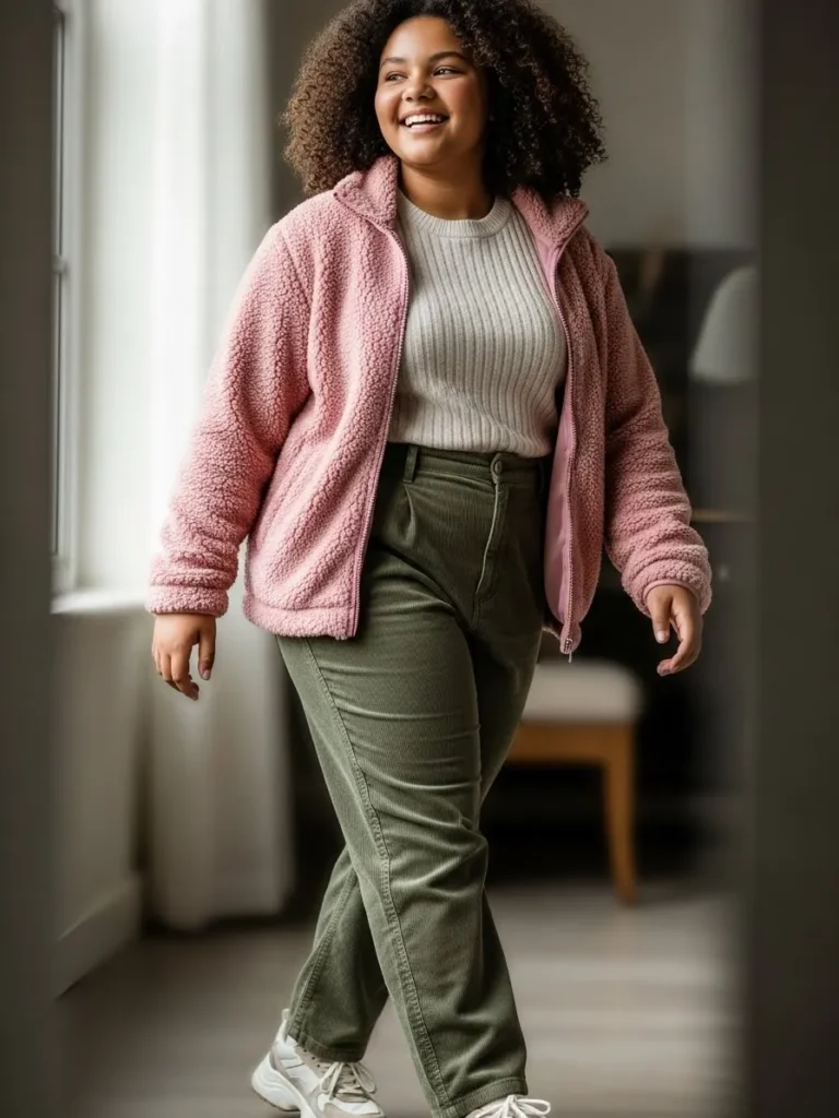 Cozy Pink Fleece With Everyday Corduroy Vibes