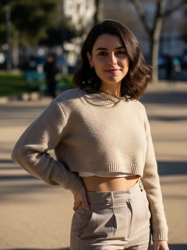 I am such a fan of this kind of outfit because it feels fresh and confident. The high waist balances the cropped length beautifully, and the neutral palette keeps it chic instead of trendy. It is the kind of outfit that makes me feel put together the moment I step outside.
