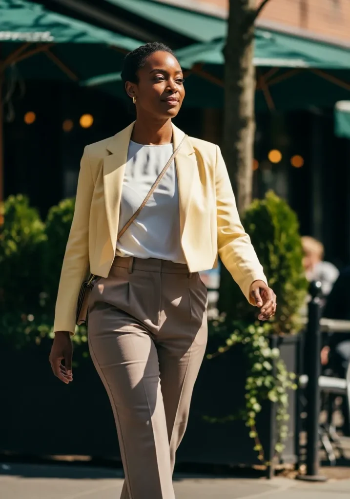 Cropped Jacket With Neutral Trousers