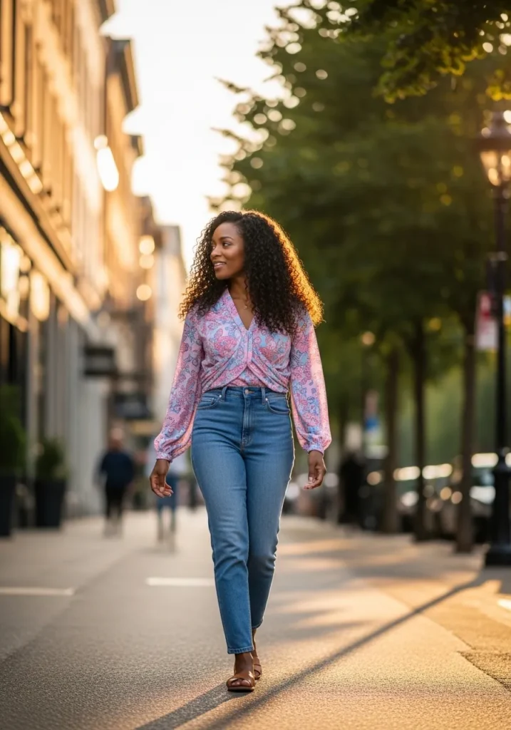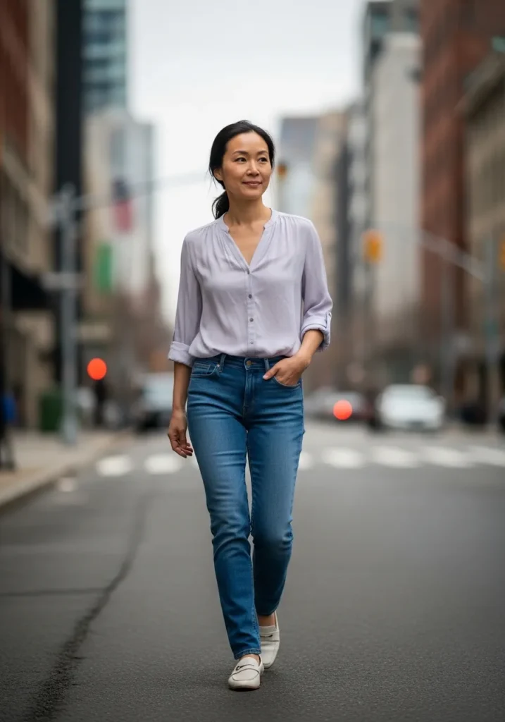 I love how calm and put together this outfit feels without trying too hard. The blouse instantly makes jeans look more refined and wearable for everyday plans. This is a great option when I want to feel confident and comfortable at the same time.