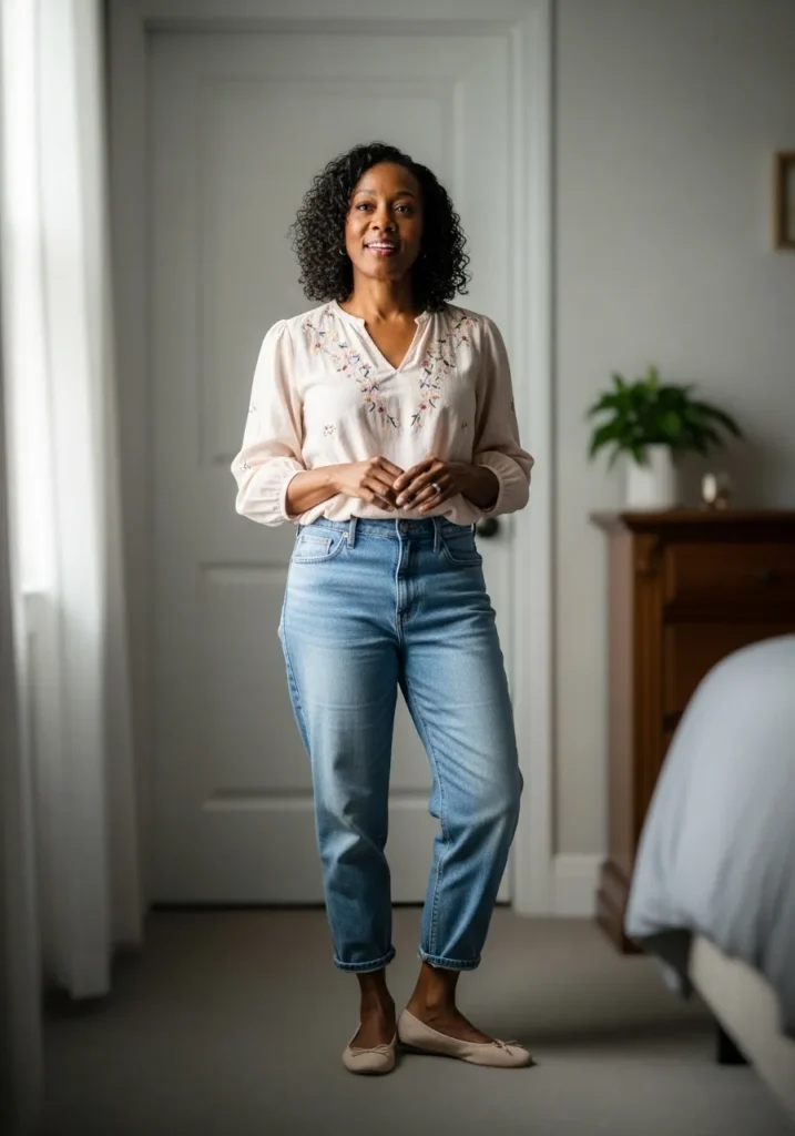 Relaxed Denim With a Soft Neutral Blouse