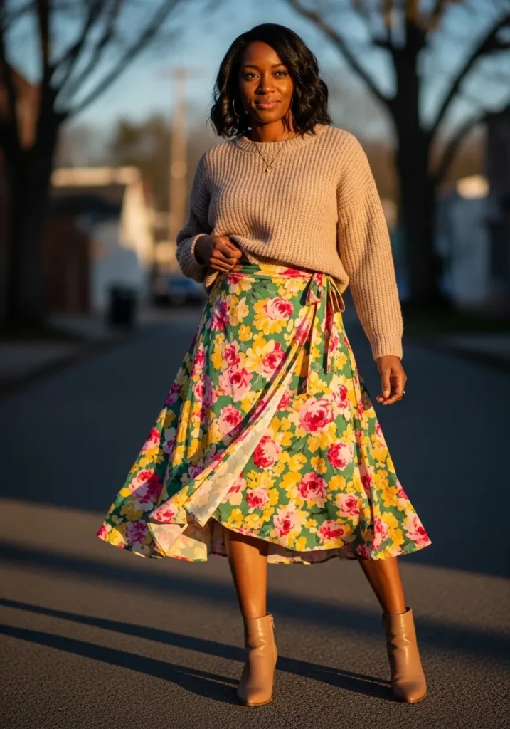 Cozy Knit With a Floral Midi Moment